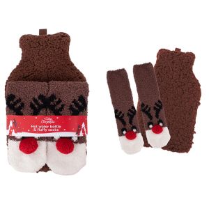 Hot Water Bottle with Socks - Reindeer